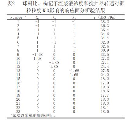 通過研究球料比、枸杞子渣漿液濃度、攪拌器轉(zhuǎn)速對(duì)枸杞子渣粒度的影響,得出如下結(jié)論: